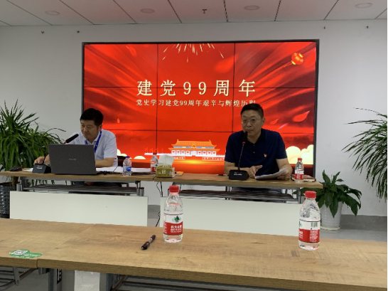 7月10日下午,在石化经济小区12楼路演厅,二工区经济小区联合支部书记曹伟同志以“建党99周年艰辛与辉煌历程”为主题,为三个经济小区的党员、班子成员、发展对象、入党积极分子、入党申请人及团支部上了一堂书记党课。本次党课还邀请了本部支部、孵化器联合支部的负责人参加。