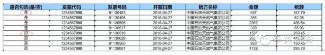 3、纳税人根据需要筛选出需要勾选的发票清单,单独保存为1个excel 2003格式的xls文件,并将对应的“是否勾选”列的值改为“是”即可实现勾选数据的准备。如果要对当月已勾选(尚未执行勾选确认操作)的发票进行回退处理(仅限于未扫描认证过的发票),将已勾选过的发票信息填写到文件中,并将“是否勾选”列改为“否”即可实现勾选操作的回退处理。