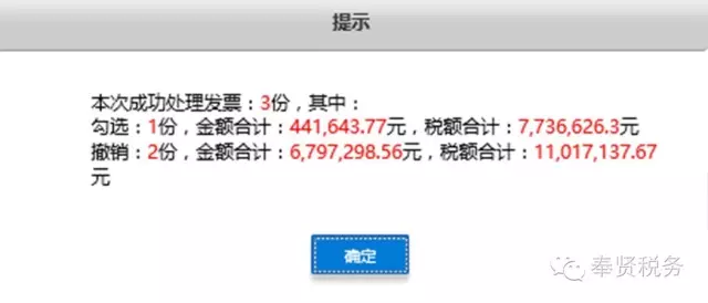 5、批量勾选操作成功后,系统会先显示如下的提示信息,对本次文件批量勾选操作中的勾选和撤销勾选情况进行汇总显示。点击确定按钮后,系统会以红色字体标识出最近一次的日志记录: