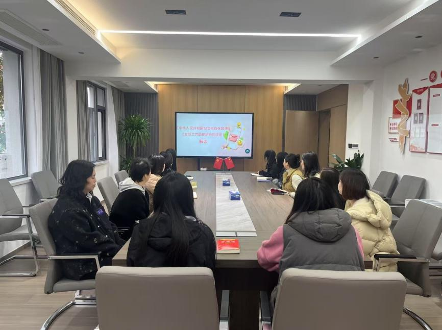 在宣传会上,主讲人唐依磊首先对《中华人民共和国妇女权益保障法》进行了详细介绍,重点强调了女性在职业就业、人身人格、财产分配等方面享有的平等权利。随后,又解读了《女职工劳动保护特别规定》,明确了企业在保障女职工特殊时期(如孕期、产期、哺乳期)合法权益方面的责任与义务。最后用案例分析讲述了在职场上遇到侵犯个人权益或不公平待遇时,如何用法律武器保护自己,有效维护自身合法权益。