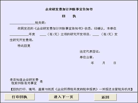 (一)对于查账征收企业,增加《企业研发费加计扣除事宜告知书》和《企业研发费加计扣除事宜告知书回执》页面。