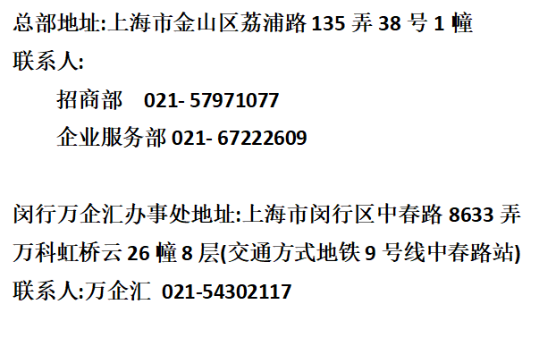 地址: 上海金山石化金一东路1号(金山宾馆)南楼一层(靠近沪杭公路) 招商热线:021-57970985/021-57971077 传真:021-57971864