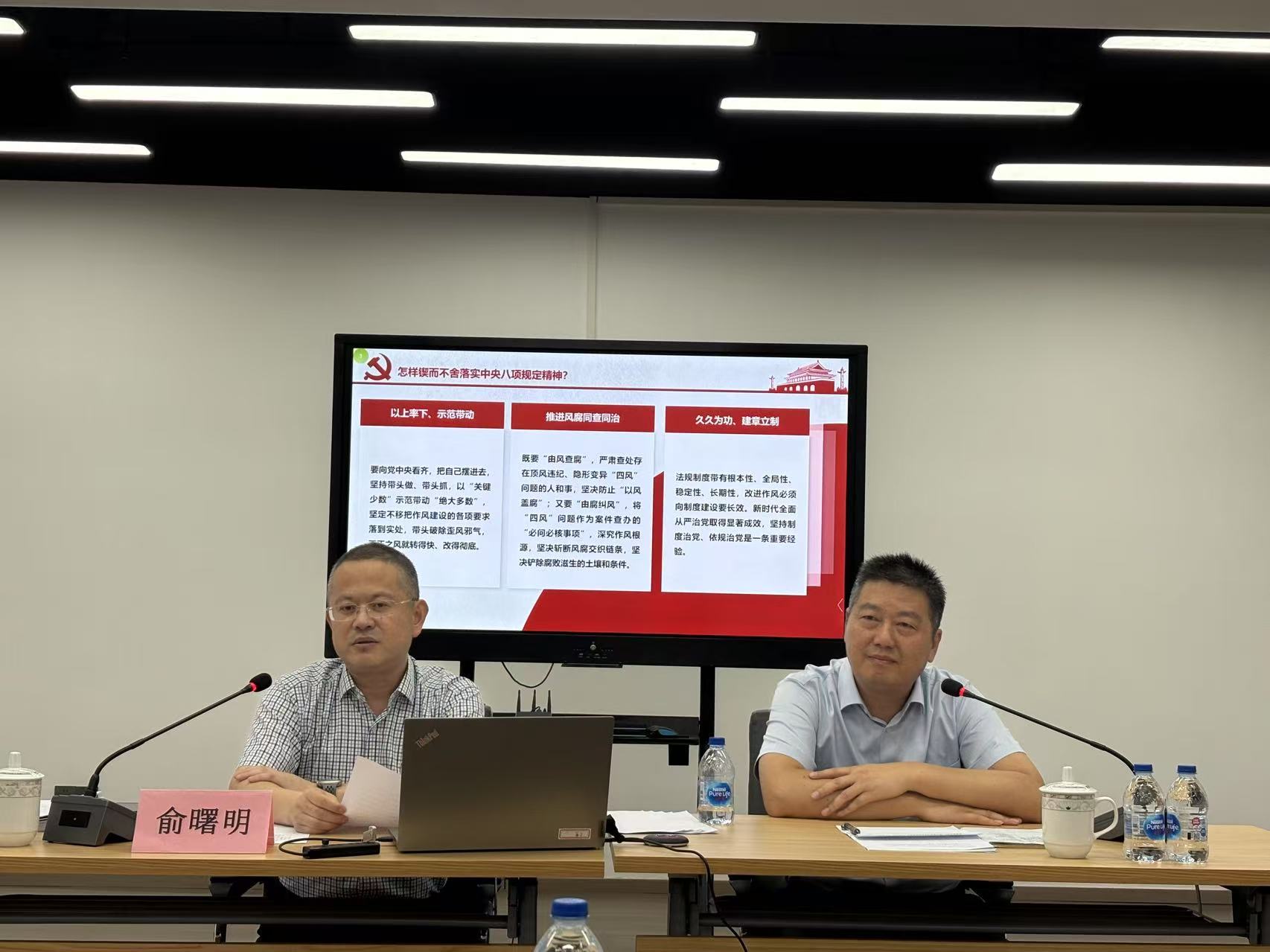 最后,俞曙明要求小区在落实八项规定精神中,小区班子人员要坚持以上率下、示范带动,党员干部带头破除歪风邪气。要求全体与会人员要锲而不舍落实中央八项规定精神,不断提升工作作风,专业能力,精准招商,以优良作风创建风清气正的营商环境,为碳谷绿湾转型发展贡献力量。