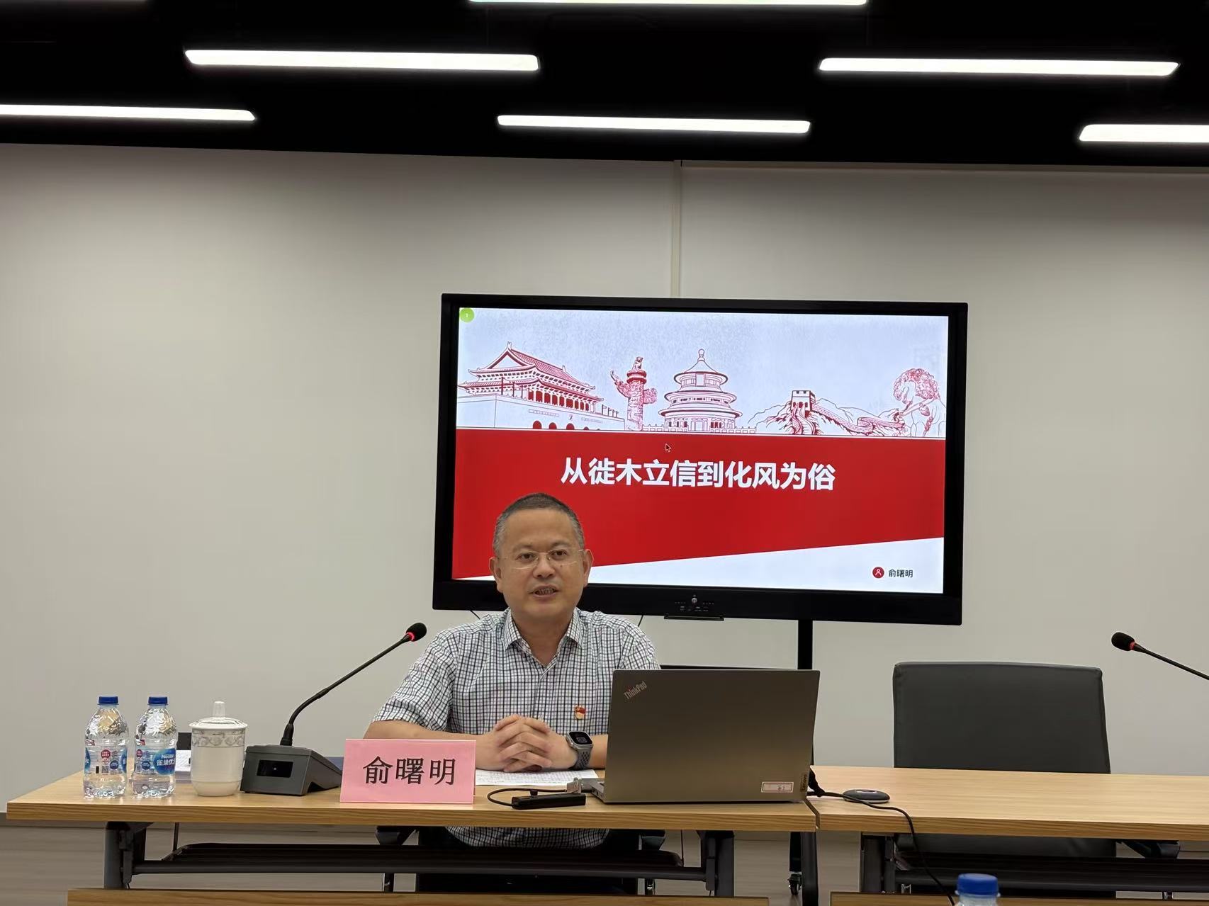 联系领导俞曙明以“从徙木立信到化风为俗”为主题,为大家上专题党课。党课强调,中央八项规定精神学习教育要深入贯彻到每一位员工,作风建设关乎园区事业成败,要锲而不舍落实八项规定精神。同时针对小区工作实际,俞曙明指出:经济小区的化工产业链招商还有较大提升空间;优质企业税收导入波动较大;招商人员专业能级需要进一步提升。