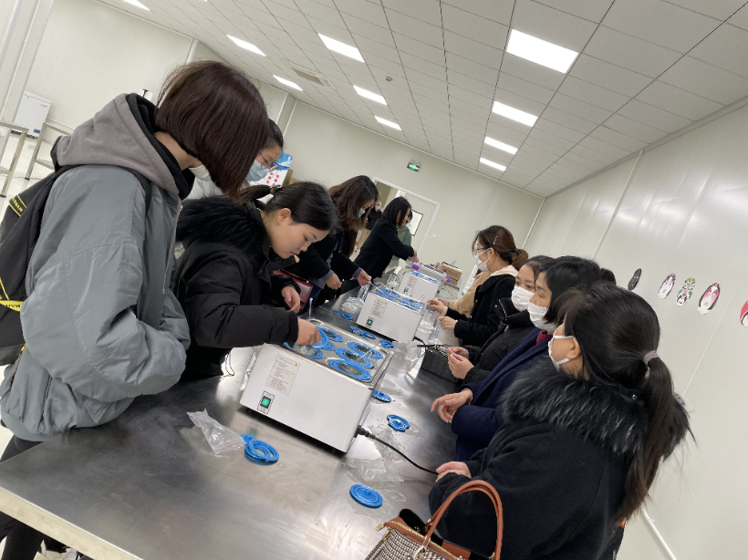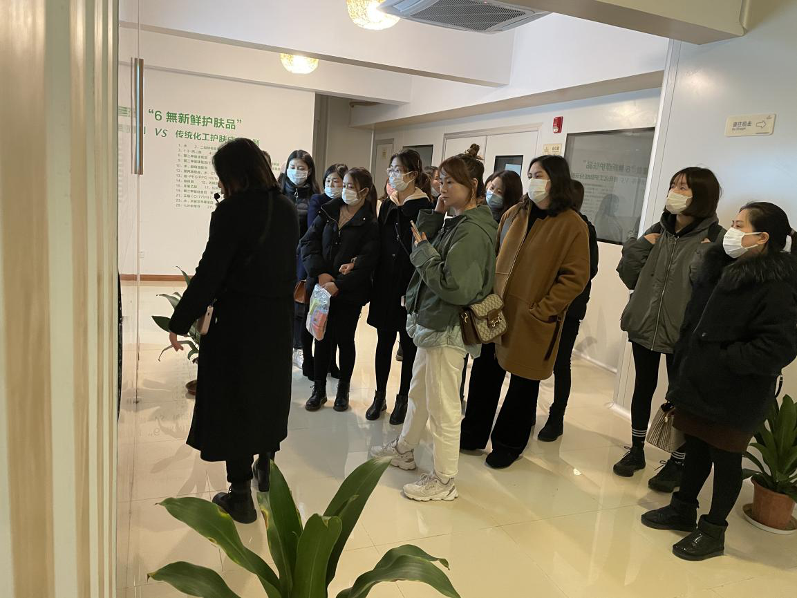 随后,大家一行来到了上海著名的护肤厂——“冻龄”梦工厂进行参观与体验活动。在专业老师的指导下,大家体验制作的乐趣,收获创作的快乐。在等待肥皂凝固期间,老师带领大家参观了工厂展厅,在老师的讲解下,了解了化妆品从原料、研发、加工、生产的各道工序。大家不禁感叹:科技创造美好生活。