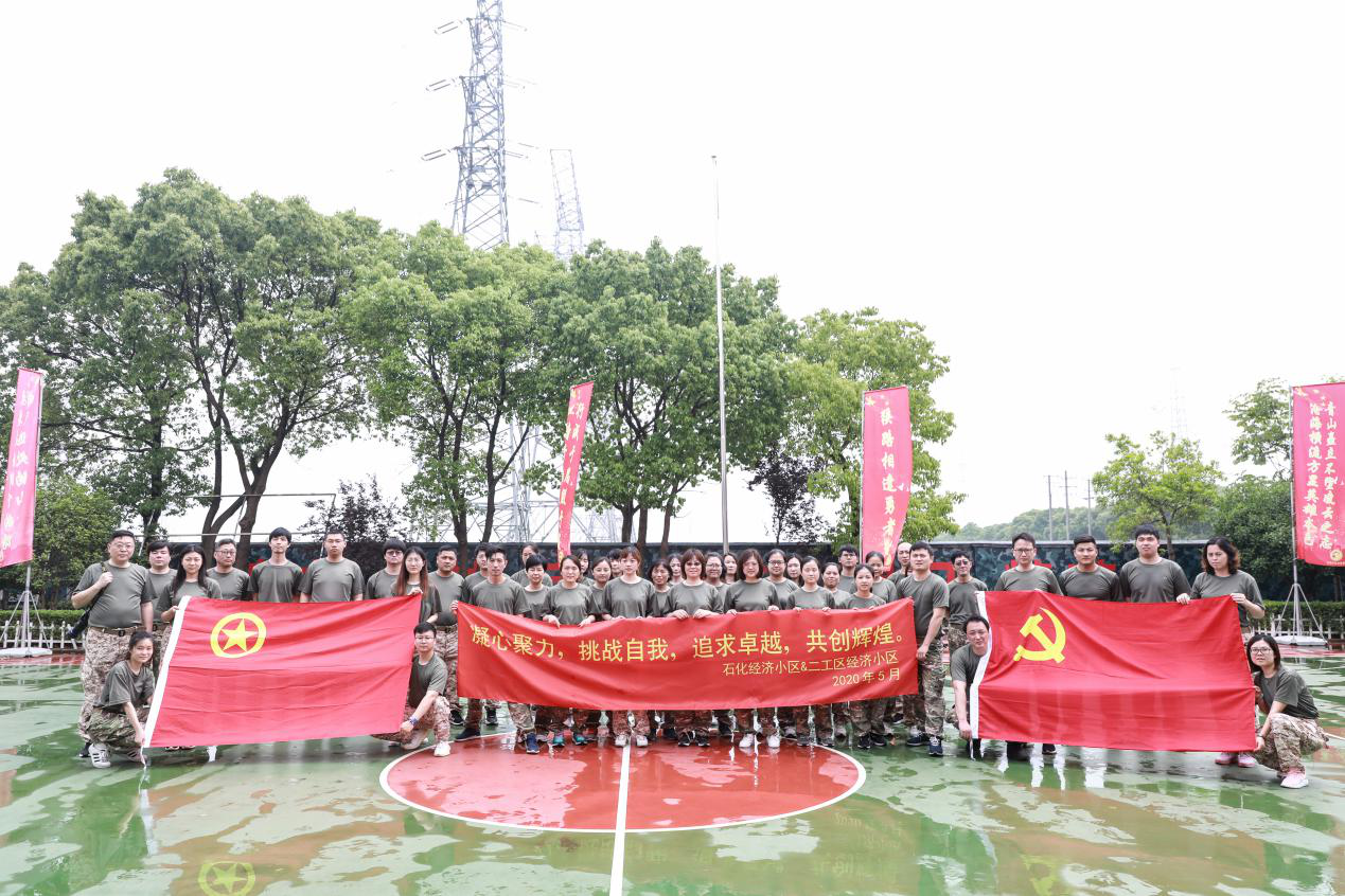 5月16日,二工区经济小区和石化经济小区工会在小区支部的指导下,以 “凝心聚力 挑战自我”为主题,组织工会成员前往漕泾镇水库村金鹰训练营开展军事拓展训练。