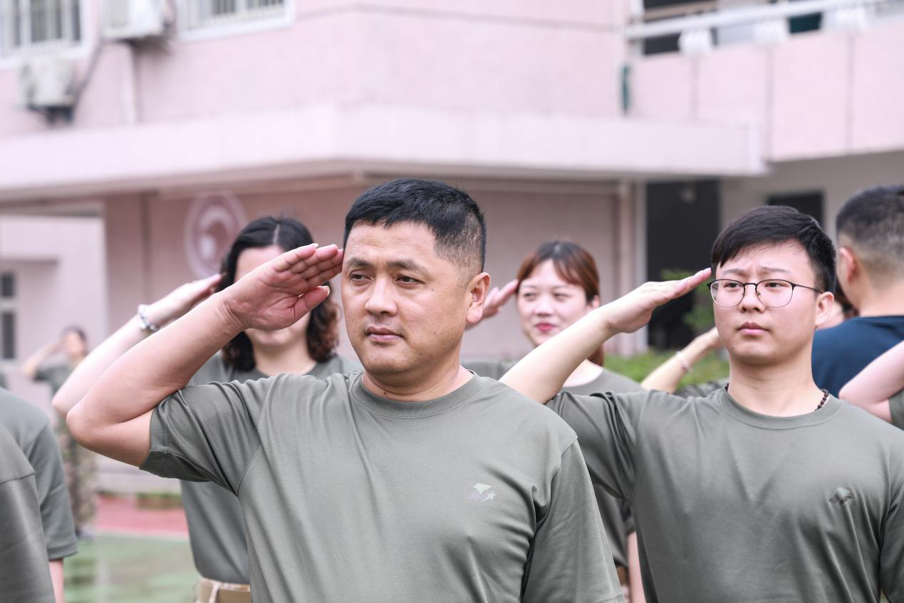 此次拓展训练为期一天。上午,学员们身着整齐的迷彩服,分成两队,在教官的指导下,进行了严格的列队训练及应急救护讲解训练。“立正、稍息、跨立、敬礼、礼毕”一个个看似简单的动作要做的标准却着实不容易。简单的休整之后,全体学员们进行了爱国主义视频的学习教育,再一次回顾了抗日战争时期那段不平凡的历史。