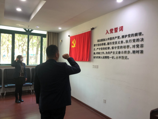 活动首先进行了预备党员入党宣誓仪式环节,在与会全体党员的见证下,预备党员李静同志在支部书记曹伟同志的领誓下面向党旗庄严宣誓,表达了对党的忠诚、为共产主义事业奋斗终生的决心,并在入党誓词上郑重的签上了自己的名字,表示今后将立足岗位作表率,以实际行动践行自己的誓言。
