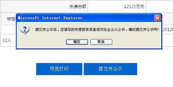 企业确认填报信息无误后,选择“提交并公示”的,系统提示企业年度报告将向社会公示,确认后,系统将显示“提交成功”。