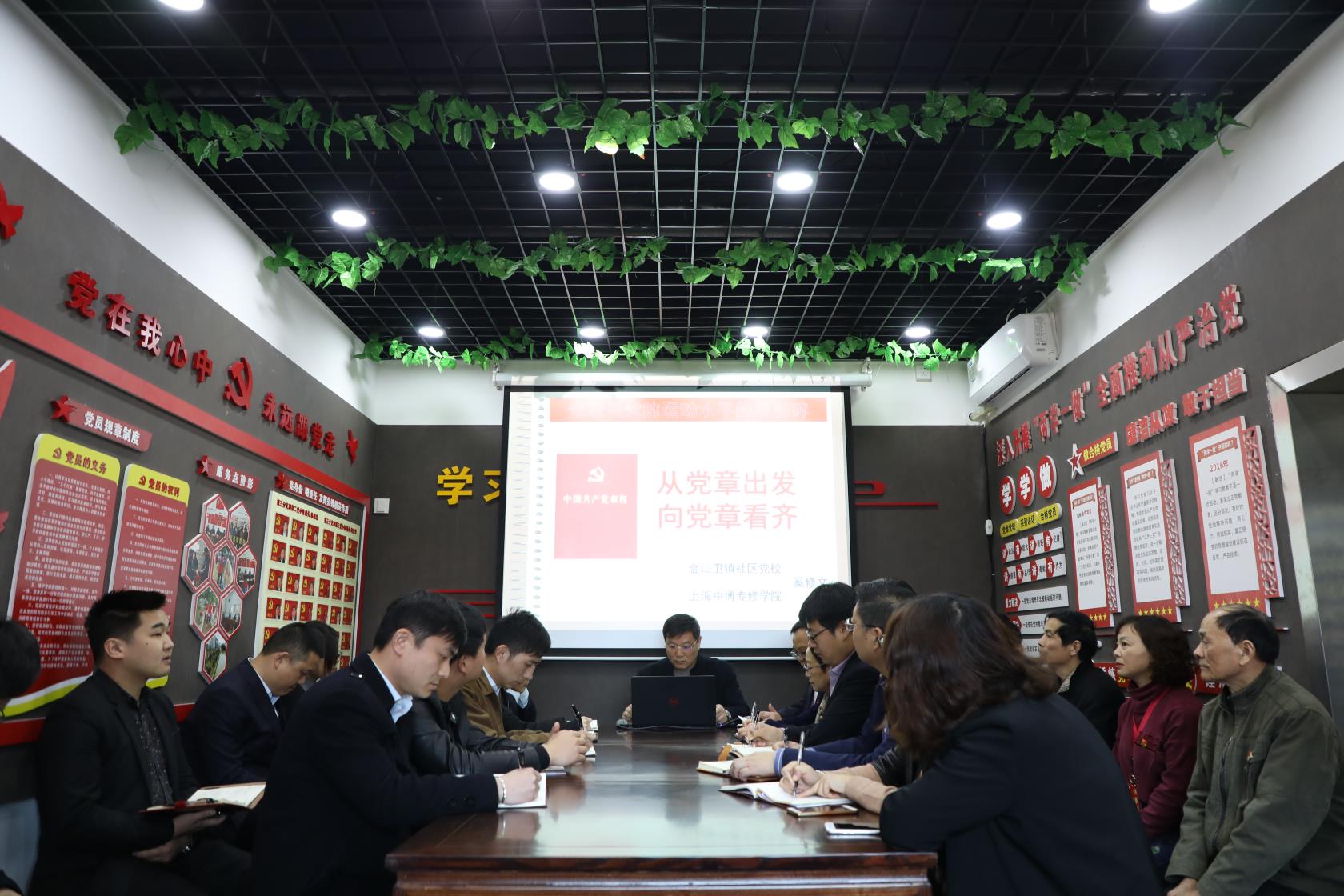 最后,大家围坐在农建村长春党建服务点学习课堂,在金山卫镇社区党校讲师、中博学院党总支部委员奚修文老师的主讲下,接受主题为《从党章出发,向党章看齐》的党课学习。大家都对中国共产党党章的由来及建设历程有了更深的了解,同时也更加坚定了跟党走的理想信念。课后,两个支部的党员、入党申请人及团员代表交流了学习心得。