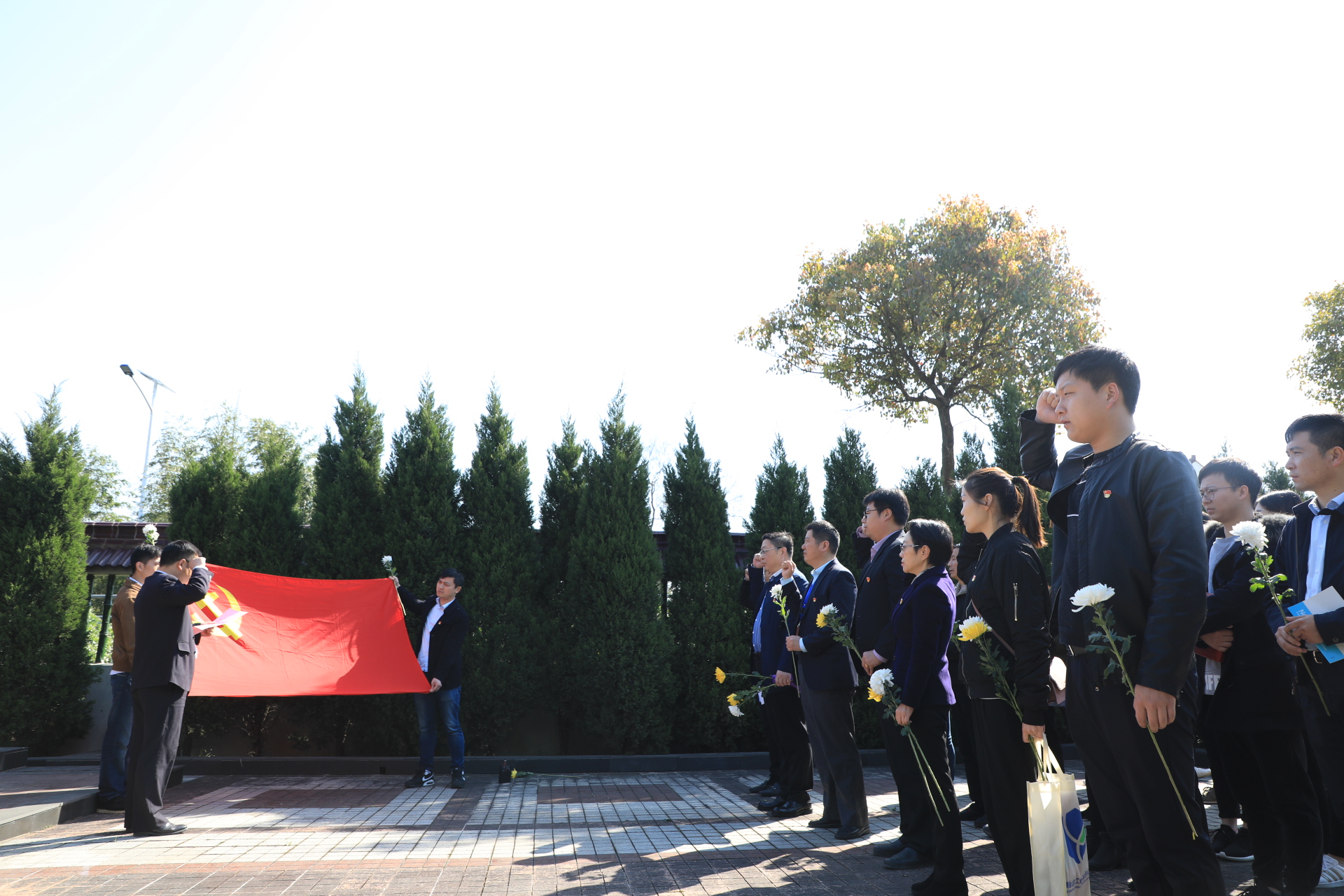 活动中,两个支部的全体党员在庄严的烈士纪念碑前重温了入党誓词,敬献了花篮。大家依次向长眠的革命先烈献上鲜花和崇高的敬意。