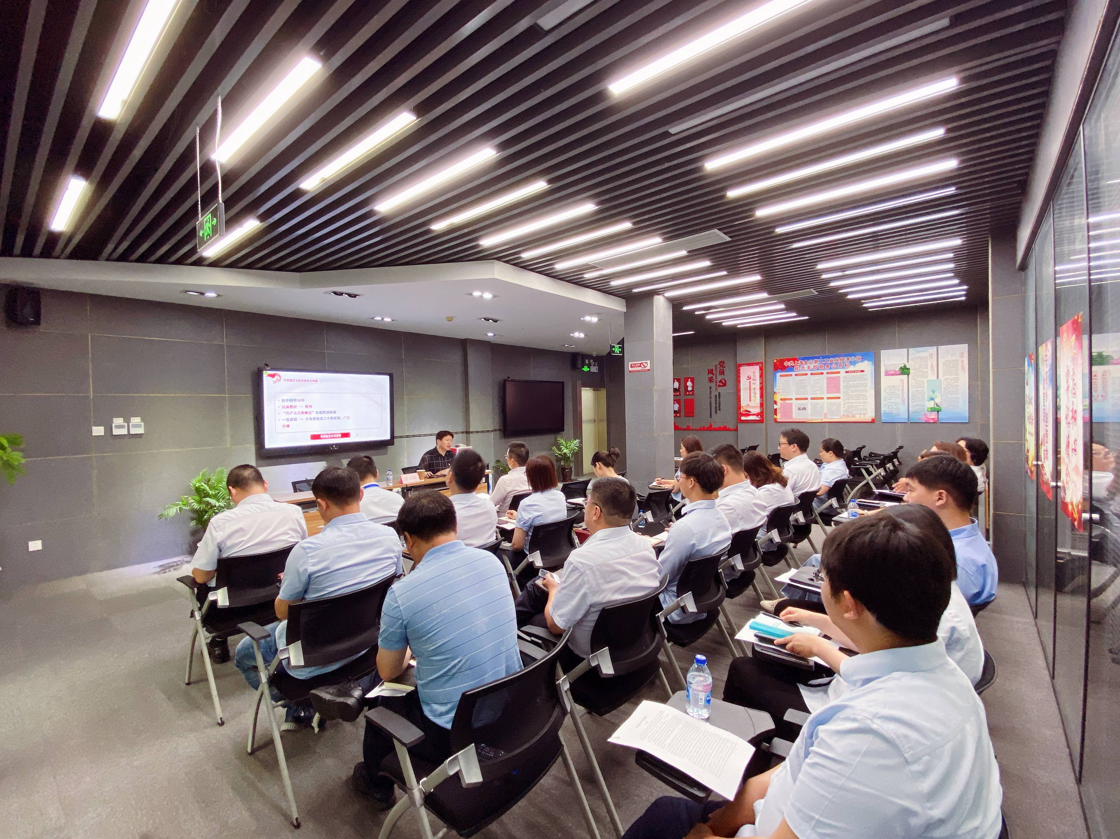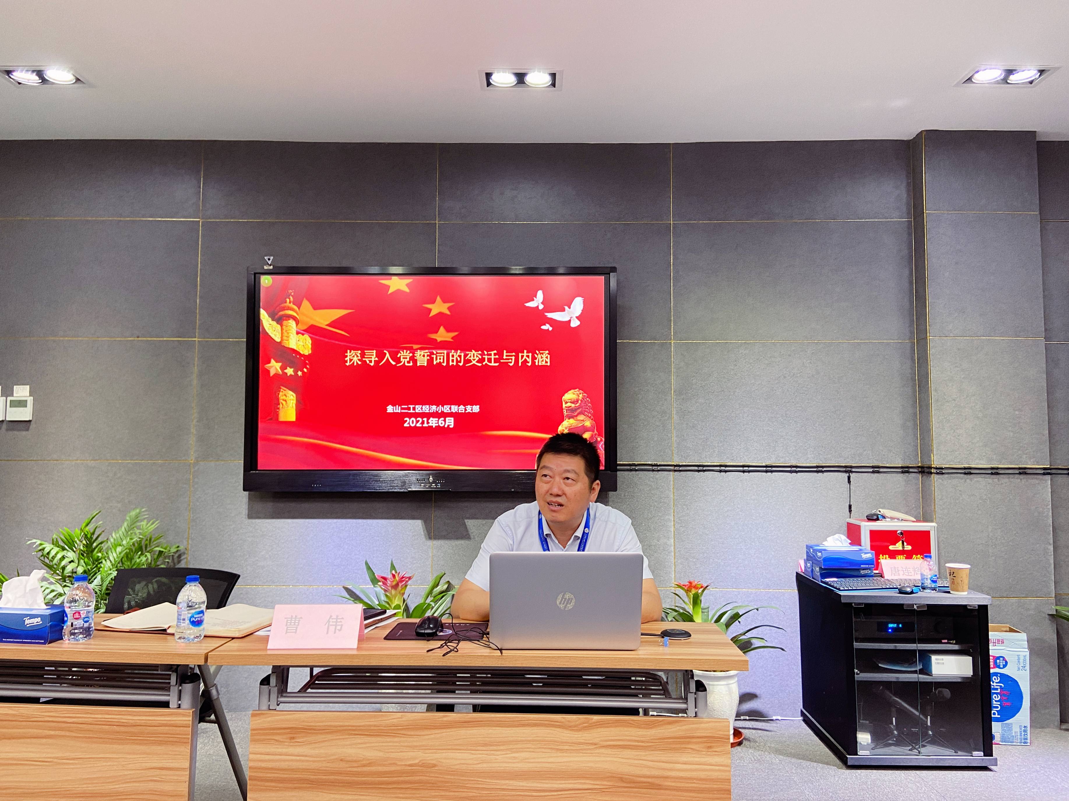 2021年6月10日上午,二工区经济小区联合党支部党员自主选题学习课堂在二工区经济小区创业服务中心开讲。今天的主讲人是二工区发展公司党委副书记唐连辉、二工区经济小区联合支部书记曹伟。他们分别以《在日本共产党的血泪史中寻找中国共产党的成功密码》和《入党誓言的演变过程》为题,为三个经济小区的党员、入党积极分子、入党申请人、班子成员以及团员青年上了一堂生动的党课。