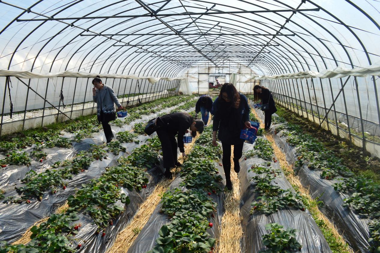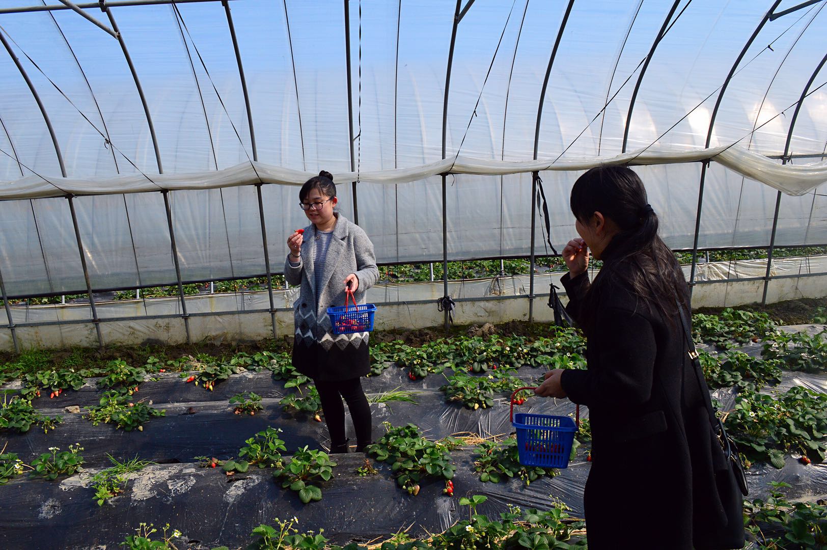 行程中,大家一路上领略着金山新农村美好景象,不知不觉来到了草莓采摘基地。在采摘基地,看着绿莹莹的叶片下隐约露出一颗颗殷红新鲜的草莓,诱人的馨香使大家早已按耐不住兴奋的心情开始采摘了起来,大家一边亲手采摘草莓,一边交流感情,活动中欢声与笑语不断,快乐与热情四溢,即体验了田园劳作乐趣,也收获了友谊和喜悦。