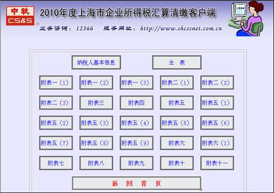 点击“返回首页”按钮,返回至《2010年度上海市企业所得税汇算清缴客户端》主界面。